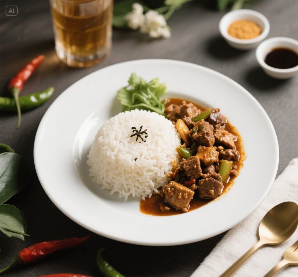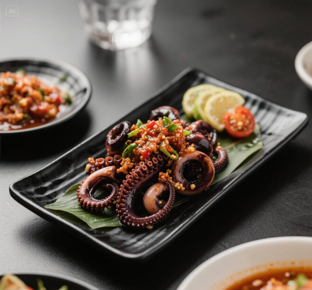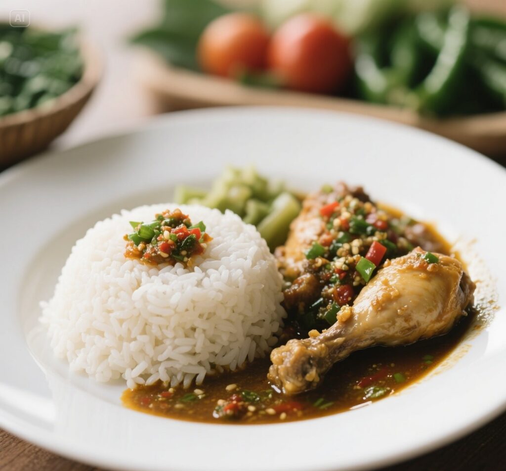 Menu Signature Dishes Rendang Melt-in-Mouth Rendang empuk dimasak lama hingga bumbunya meresap sempurna, kaya rasa dan wangi. Sambal Cumi Hitam Signature Cumi segar dengan tinta hitam pekat dan aroma pedas gurih yang khas. Oseng Daging Mercon Premium Daging juicy dengan kuah merah pedas menyala, sensasi pedas yang elegan. Ayam Geprek Sambal Matah Premium Ayam crispy dengan sambal matah segar yang aromatik dan pedas ringan. Iga Bakar Karamel Pedas Iga bakar lembut dengan glaze karamel pedas yang manis gurih. Ayam Woku Modern Style Ayam berbumbu woku wangi khas Manado dengan plating modern. Ayam Favorites Ayam Sambal Kecombrang Fresh Ayam goreng renyah dipadukan dengan sambal kecombrang segar yang aromatik dan pedas ringan. Ayam Sambal Ijo Rumahan Ayam goreng dengan sambal ijo pedas lembut khas masakan rumahan. Ayam Bakar Madu Smoky Ayam bakar dengan olesan madu smoky yang manis gurih. Ayam Kremes Golden Crunch Ayam renyah dengan kremes golden yang gurih dan harum. Ayam Rica-Rica Modern Ayam pedas-manis dengan bumbu rica khas, lebih ringan dan modern. Chicken Karaage Sambal Nusantara Ayam karaage gaya Jepang dipadukan sambal khas Indonesia. Telur, Tahu & Tempe Premium Telur Dadar Padang Fluffy Telur dadar tebal dan lembut dengan aroma rempah khas Padang. Telur Balado Modern Style Telur rebus dengan balado merah halus yang tidak terlalu pedas. Telur Ceplok Kecap Caramelized Telur ceplok dengan saus kecap caramelized yang gurih manis. Tahu Tempe Crispy Sambal Bawang Tahu dan tempe crispy dengan sambal bawang yang pedas menggugah. Tempe Orek Pedas Manis Premium Tempe orek dengan rasa manis-pedas dan tekstur crunchy lembut. Perkedel Kentang Golden Perkedel kentang lembut dengan kulit kecokelatan yang renyah.